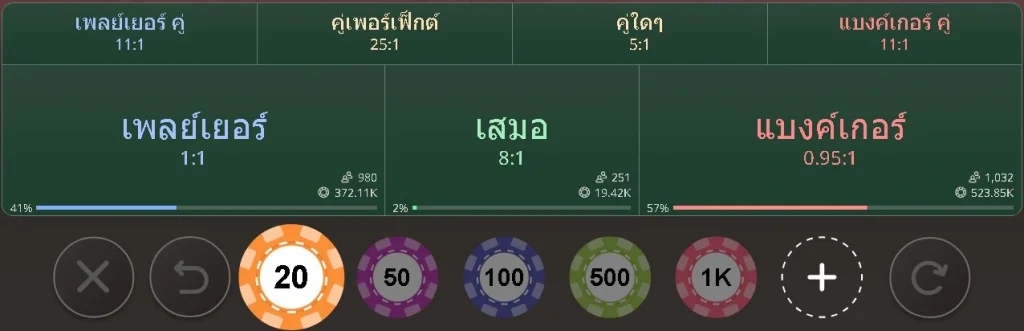 ผู้เล่นควรทำความเข้าใจ อัตราจ่ายบาคาร่ามาตรฐาน ให้ชัดเจนก่อนลงเดิมพัน เพื่อวางแผนการเล่นได้แม่นยำและลดความสับสนเมื่อชนะหรือแพ้ในแต่ละรอบ โดยเฉพาะการเลือกเล่นแบบ No Commission ที่บางเว็บนำมาใช้ ซึ่งจะเปลี่ยนอัตราจ่ายของ Banker เป็น 1:1 แต่หากชนะด้วยแต้ม 6 จะจ่ายเพียง 1:0.5
